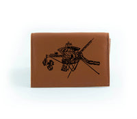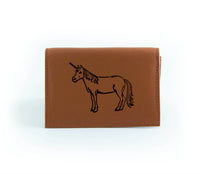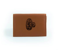 This wallet is made from reclaimed leather, making each one unique. That means color shades and surface textures may vary. The outside front is hand-printed in black ink just for you, so select a design that captures your spirit!