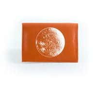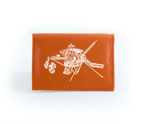This wallet is made from reclaimed leather, making each one unique. That means color shades and surface textures may vary. The outside front is hand-printed in white ink just for you, so select a design that captures your spirit!