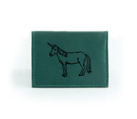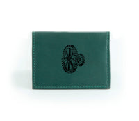 This wallet is made from reclaimed leather, making each one unique. That means color shades and surface textures may vary. The outside front is hand-printed in black ink just for you, so select a design that captures your spirit!