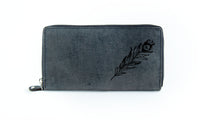 The outside front of this textured grey leather wallet is hand-printed in black ink just for you, so select a design that captures your spirit!