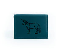 This wallet is made from reclaimed leather, making each one unique. That means color shades and surface textures may vary. The outside front is hand-printed in black ink just for you, so select a design that captures your spirit!